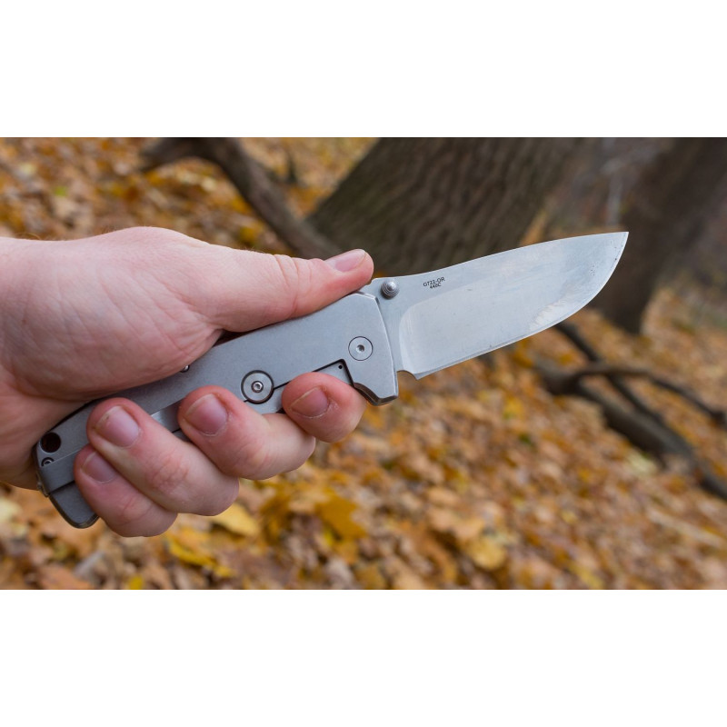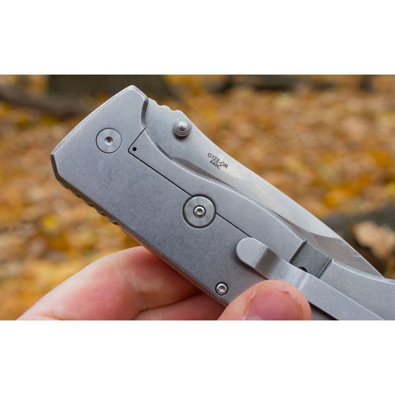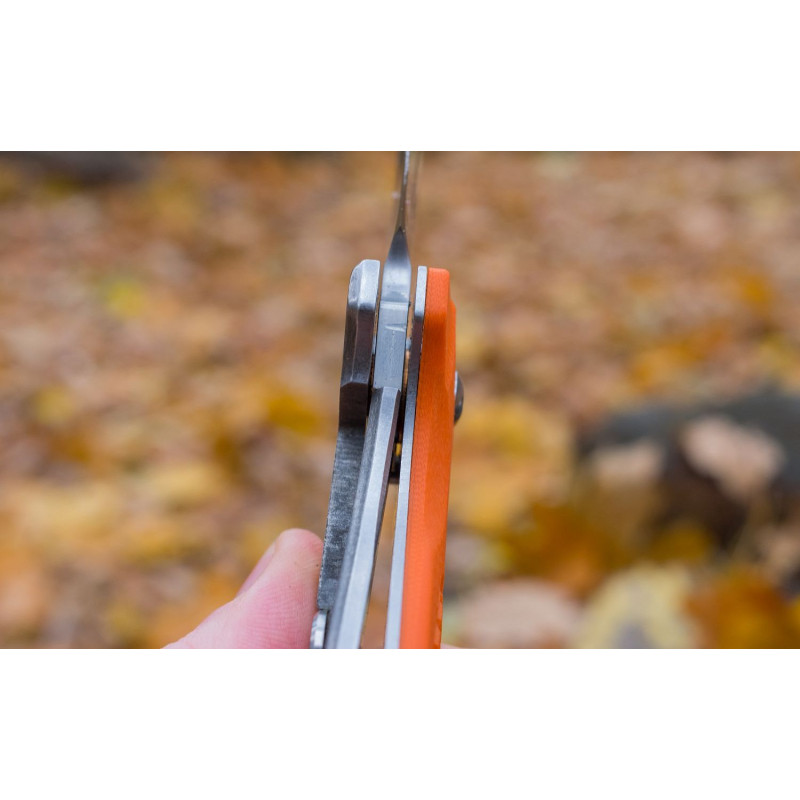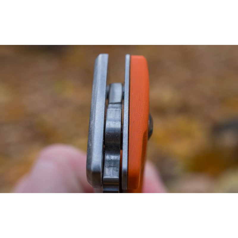 Для ручки ножа виробники вибрали все ту ж нержавіючу сталь, а також сучасний різновид склопластику - G10. Він відноситься до композитних матеріалів з високою міцністю і здатністю протистояти основним видам корозії. Покупці можуть вибирати ножі з накладками трьох різних кольорів: класичного чорного, зеленого або оранжевого. Зі зворотного боку ручки розташована металева сталева кліпса для закріплення ножа в кишені або на поясі.