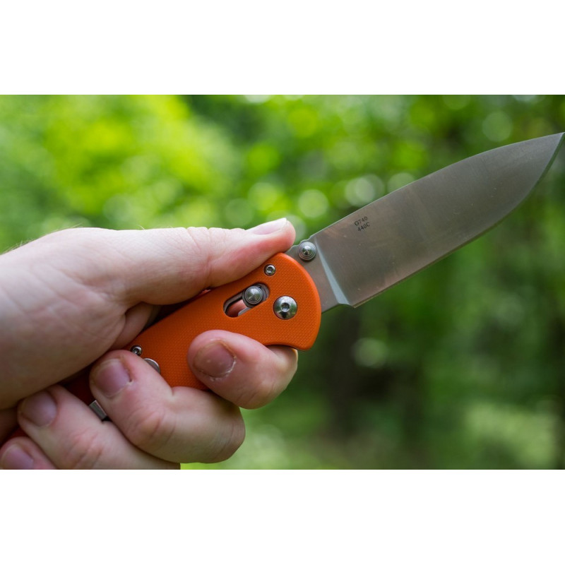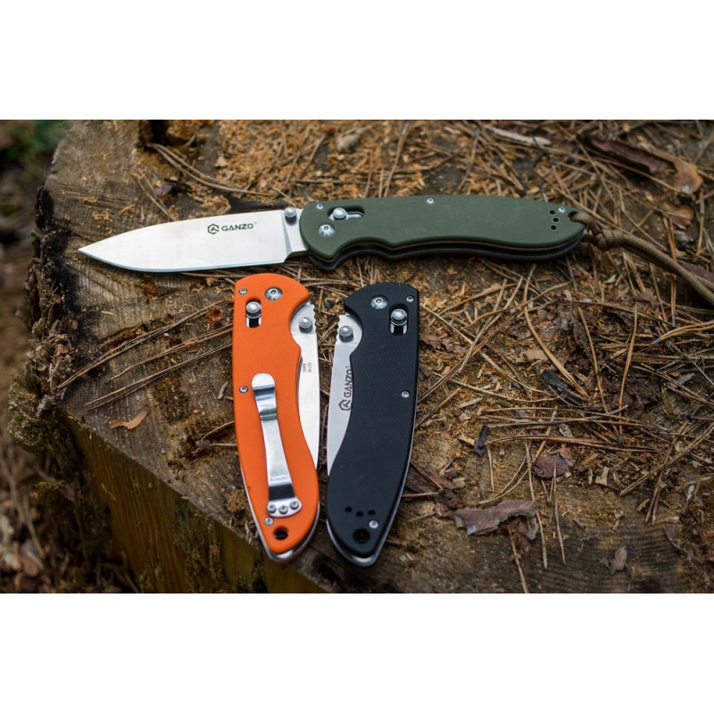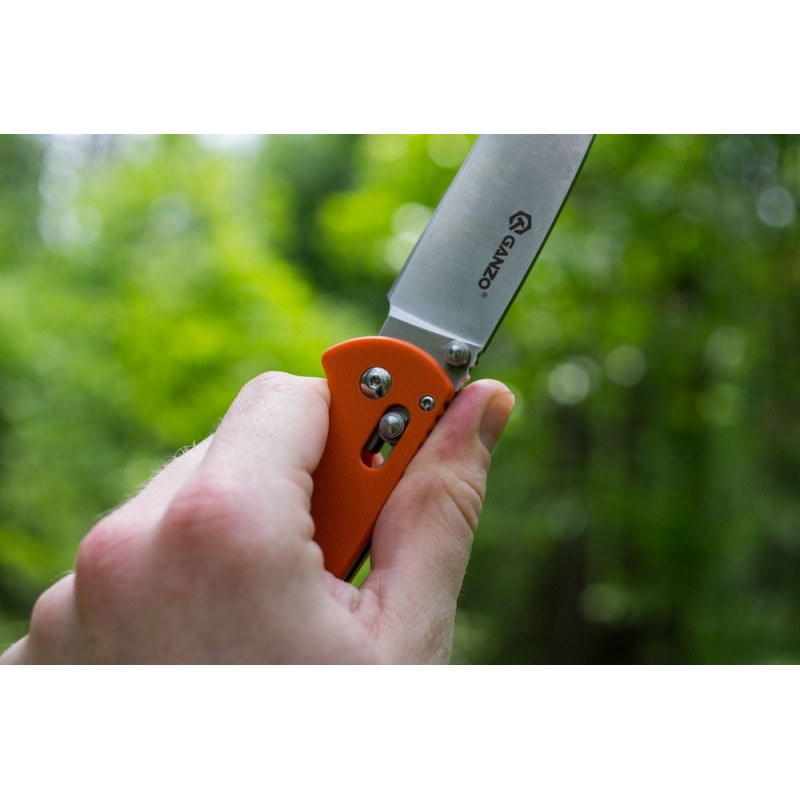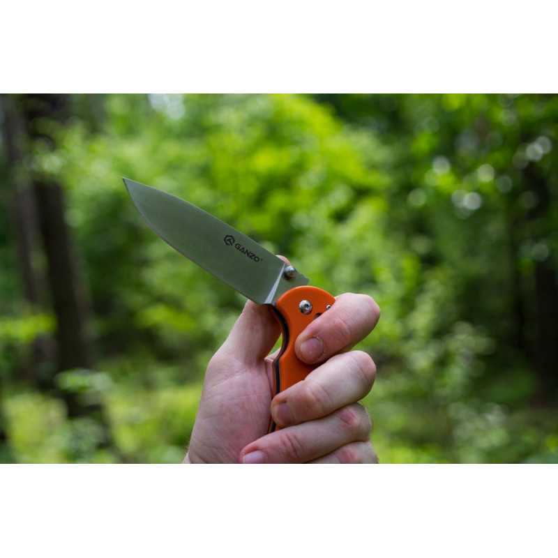 Ніж Ganzo G740 відрізняється від інших моделей досить значними розмірами. Але завдяки складаний конструкції, його все так само легко взяти з собою на поїздку на природу і використовувати як для стандартних робіт, так і для найбільш складних. Лезо ножа виконано з високоякісної твердої і нержавіючої сталі 440С.цей сплав відмінно збалансований щодо корозійної стійкості і твердості металу. Тому ніж не потребує особливо складного догляду: не іржавіє на риболовлі або в туристичному поході, довго залишається гострим навіть при постійному використанні. Довжина леза в даній моделі становить 9,5 см. воно рівно і гладко заточене по всій довжині. Товщина клинка теж трохи більше, ніж зазвичай пропонує компанія Ganzo і становить 3.5 мм.цим потужним клинком можна з легкістю обробити м'ясо, перерізати невеликі гілки, заготовити стружки для розпалювання багаття. При цьому, модель Ganzo G740 повністю відповідає нормам, які дозволяють говорити, що цей ніж не є зброєю і дозволений до використання широким колом людей.