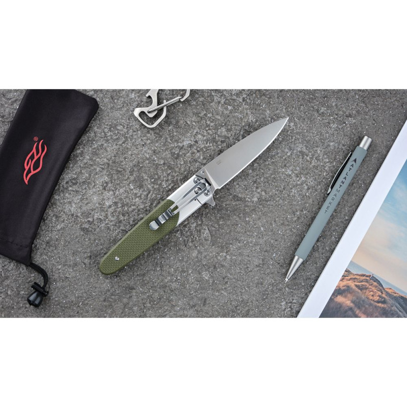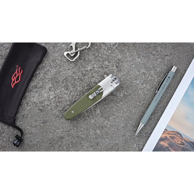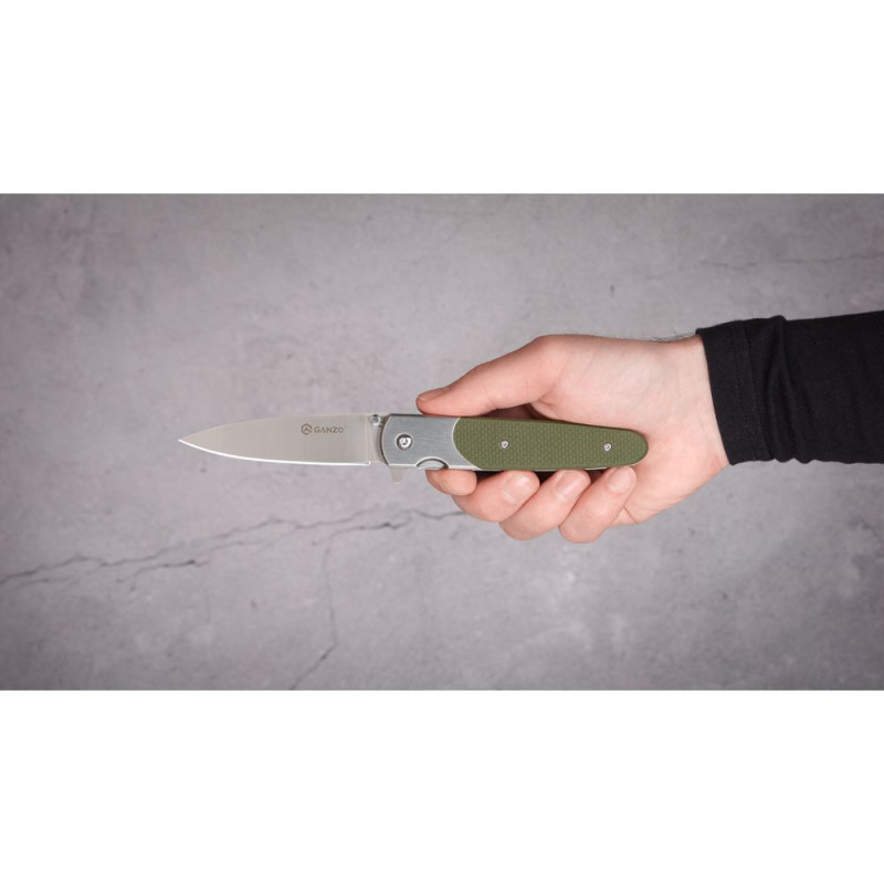 Ніж для туризму Ganzo G743-1 — це практична модель, яка поміститься до будь-якого вашого спорядження. Клинок довжиною 87 мм легко складається всередину рукоятки, завдяки чому переносити ніж стає повністю безпечно. Щоб відкрити його і приступити до роботи, достатньо легко потягнути за шпеник. До речі, у відкритому вигляді лезо легко фіксується і вже не рухається навіть під навантаженням. Цьому сприяє замок Frame Lock — різновид лінійного механізму зі сталевою притискною пружиною, яка одночасно є елементом рукоятки.