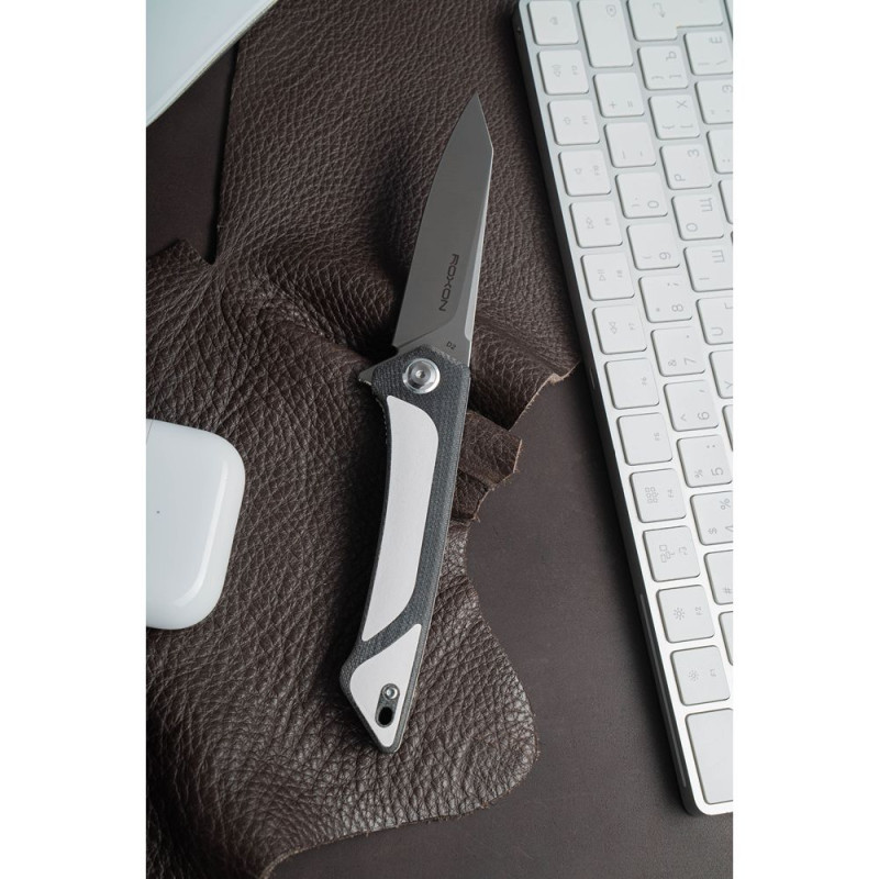 Складаний ніж моделі Roxon K2 представлений у різних варіантах кольору: білий, коричневий, оранжевий. Цей інструмент має зручну конструкцію і є досить потужним ножем для туристичного застосування. Клинок різновиду drop-point підходить для виконання колючих, так і ріжучих рухів. Він є універсальним і часто його можна зустріти серед ножової продукції. Ідеально підходить для різання, рубання, очищення, виколупування та інших дій.