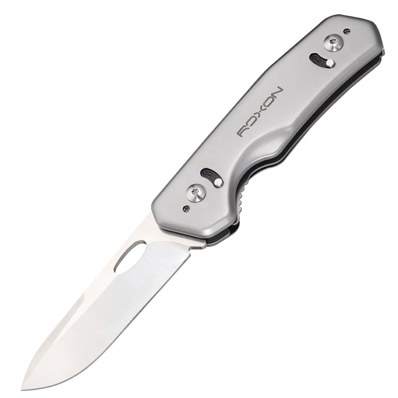 Модель Roxon Phantasy S502 являє собою складаний ніж для застосування в туризмі і в активному відпочинку. Ніж зручно і компактно складається. Прекрасний зовнішній вигляд, гладке поліроване лезо. Є металева кліпса для закріплення ножа і перенесення, можна зафіксувати на кишені, на сумці або на поясі. Потрібний інструмент завжди у вас під рукою. Форма леза ножа – Drop-point, воно може взаємозамінюватися з лезом моделі S802. Є також змінні леза до ножа, щоб можна було виконувати різні операції. Їх треба купувати окремо.