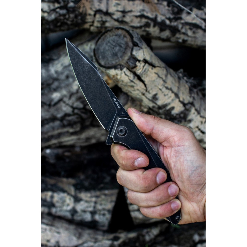 Модель ножа для повсякденного використання повинна володіти особливими якостями. У тому числі, це і хороша стійкість до різних факторів, що призводить до корозії. Дуже бажано, щоб цей ніж сподобався своєму власникові зовні. Ruike P128-SB відповідає всім цим вимогам. Даний ніж гарний, міцний, надійний і орієнтований на виконання більшості завдань як повсякденного характеру, так і тих, які стають актуальними на природі. Його лезо виконане з сталі 14C28N. Даний різновид нержавіючої сталі має відмінну твердість, яка дозволяє ножу довго обходитися без повторної заточування. Довжина клинка Ruike P128-SB — 93 мм, товщина теж чимала — 3,5 мм. Цим ножем можна без проблем порізати практично будь-які продукти харчування та інші матеріали. Тим більше, що заточування у цій моделі універсальна — рівна.