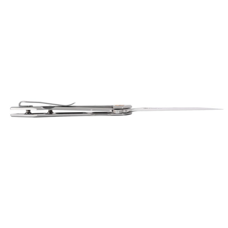 Відкривання конструкції відрізняється плавністю завдяки кульковальнику з високовуглецевої, хромовмісної сталі. В момент фіксації клинка звучить характерне клацання, яке говорить про те, що лезо приведено в бойову готовність і утримується запірним механізмом frame lock. Повна довжина ножа дорівнює 195 мм.