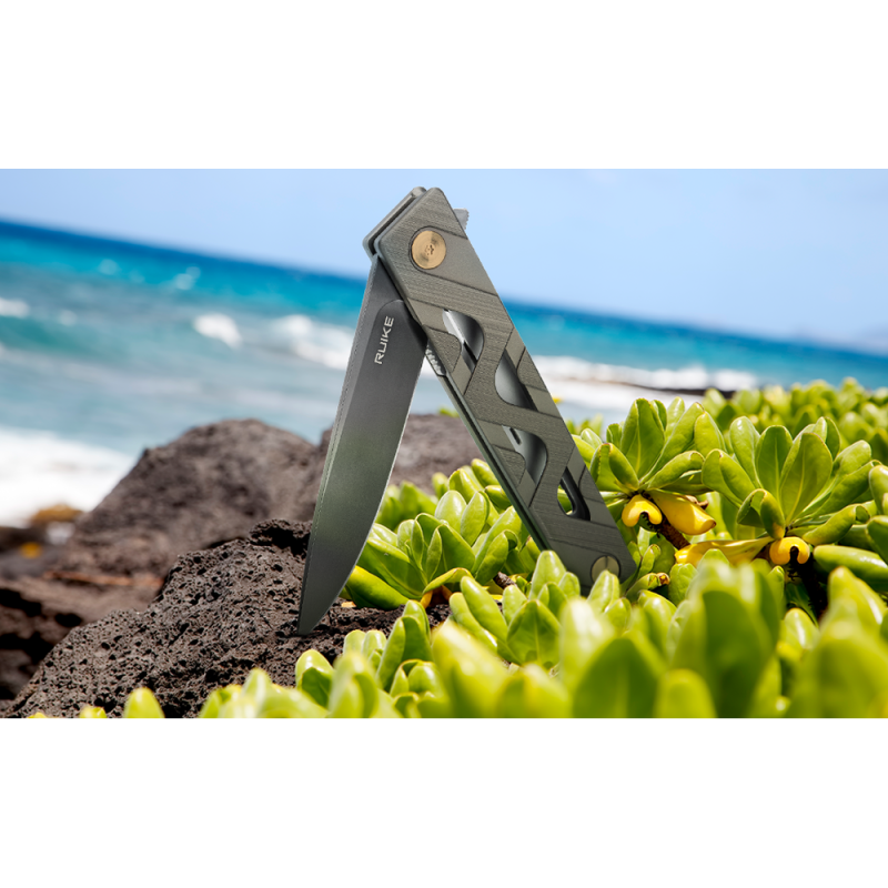 Запам'ятовуваний, стильний, універсальний — все це про складаний ніж Ruike P878, який може похвалитися не тільки яскравим дизайном з порожнистим руківʼям, а й безліччю особливостей конструкції, що позитивно впливають на зручність експлуатації. Головна з них — надлегка вага, що дорівнює лише 64 г і робить модель практично невідчутною під час носіння. До того ж конструкція оснащена однопозиційною кліпсою, яка фіксує інструмент на поясі або кишені, дозволяючи носити виріб, куди б ви не прямували — на пікнік, заміський відпочинок із друзями, риболовлю чи туристичну подорож.
