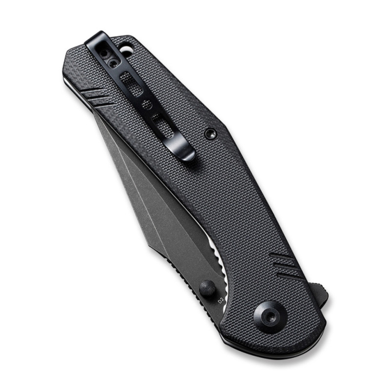 Сталева кліпса Tip-Up — стандартний аксесуар, що є в більшості інструментів Sencut і материнської компанії We Knife. За допомогою кліпси можна кріпити ніж на одязі, лямці рюкзака або сумці для запобігання втраті інструменту, вага якого становить рівно 110 грамів.