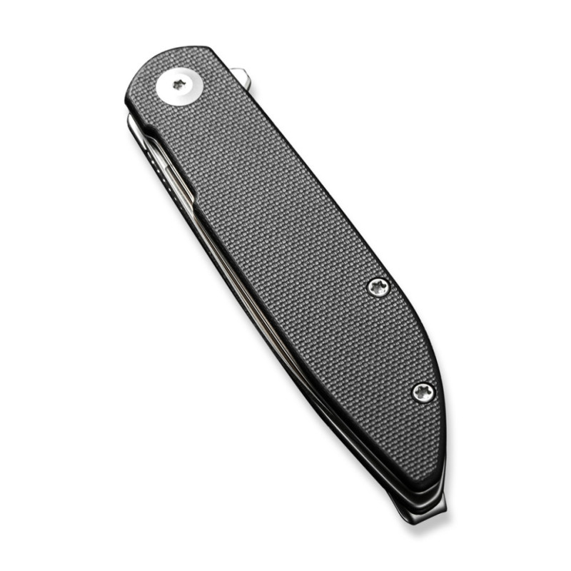 Склотекстолітові плашки на руківʼї перешкоджають ковзанню ножа в долоні. Зручності захоплення також сприяє товщина руківʼї, що дорівнює 10.9 мм. Довжина складеної конструкції дорівнює 94.6 мм.