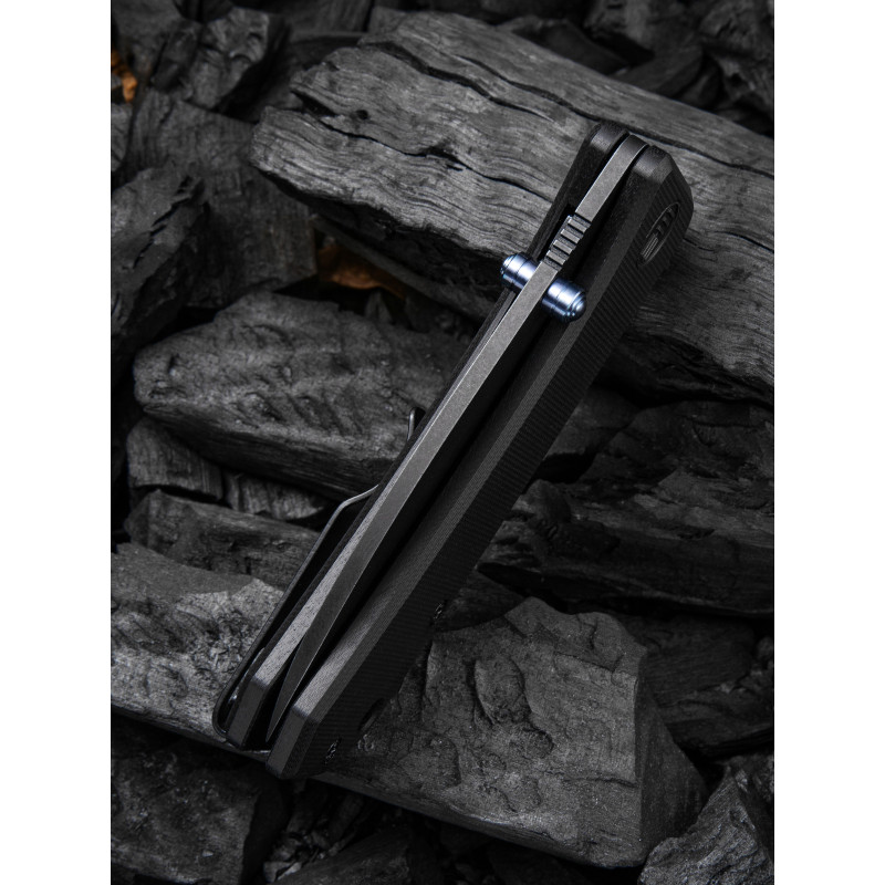 Модель має чорне руківʼя з плашками зі склопластику G10, класичного матеріалу для багатьох EDC ножів. Шорстка поверхня накладок робить утримання конструкції зручним, не даючи долоні ковзати, а зносостійкість G10 гарантує, що руківʼя не трісне та не деформується у разі температурних перепадів та механічного впливу.