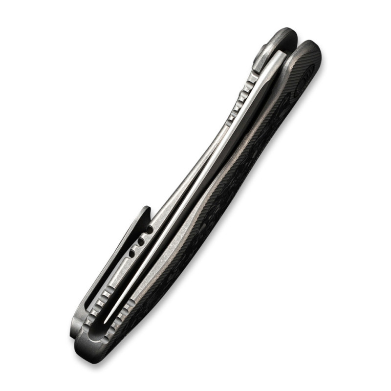 З правого боку руківʼя закріплено однопозиційну кліпсу, також виготовлену з титану. У хвості ножа є овальний отвір для темляка.