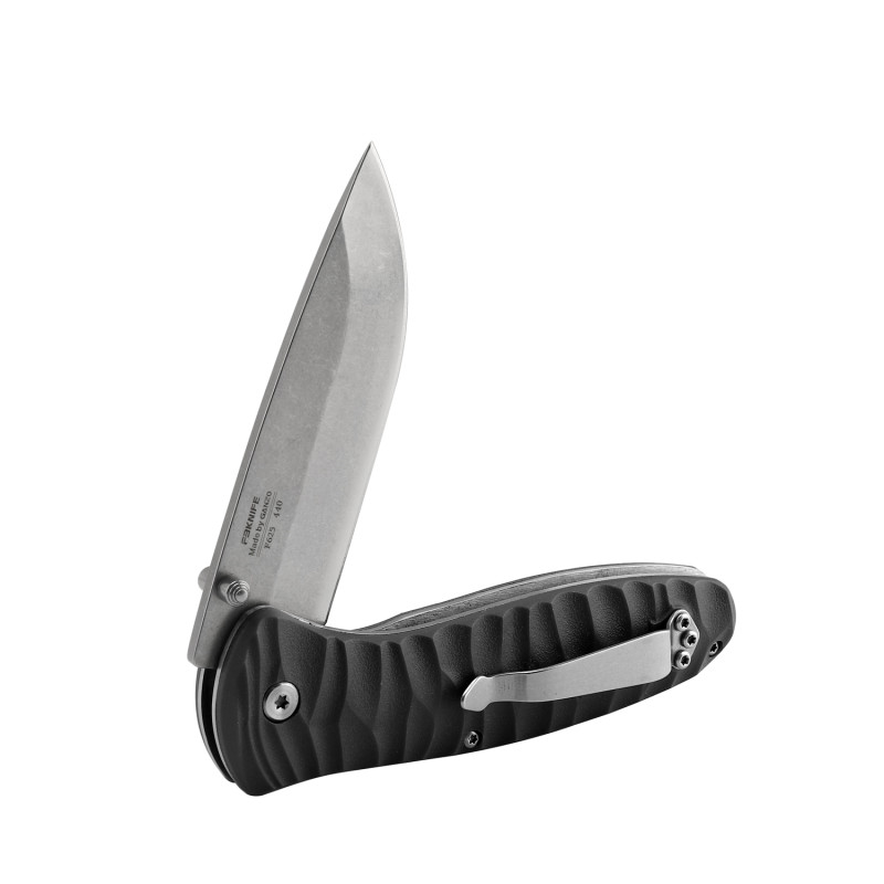 Ручка округленої форми, зручний, добре лягати в руку, зроблена із стеклонаполненного волокна. Такий композитний матеріал забезпечує виробу всі чудові його якості. Стійкість до зносу, міцність, тривалий термін експлуатації. Рельєфна поверхня рукояті забезпечує відмінне зчеплення, ніж не вислизне з долоні, навіть якщо вона мокра або забруднена. Виконувати ножем можна масу операцій. Нарізати продукти, розкривати консервні банки, розрізати що-небудь. Для фіксації леза передбачили замок типу Liner lock. Зручно і безпечно.