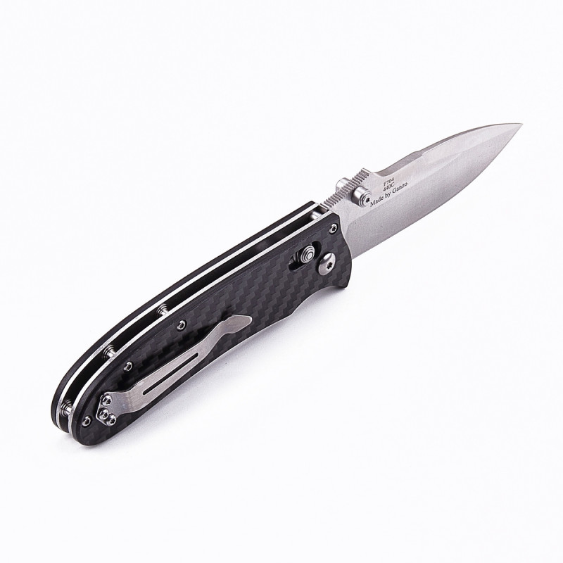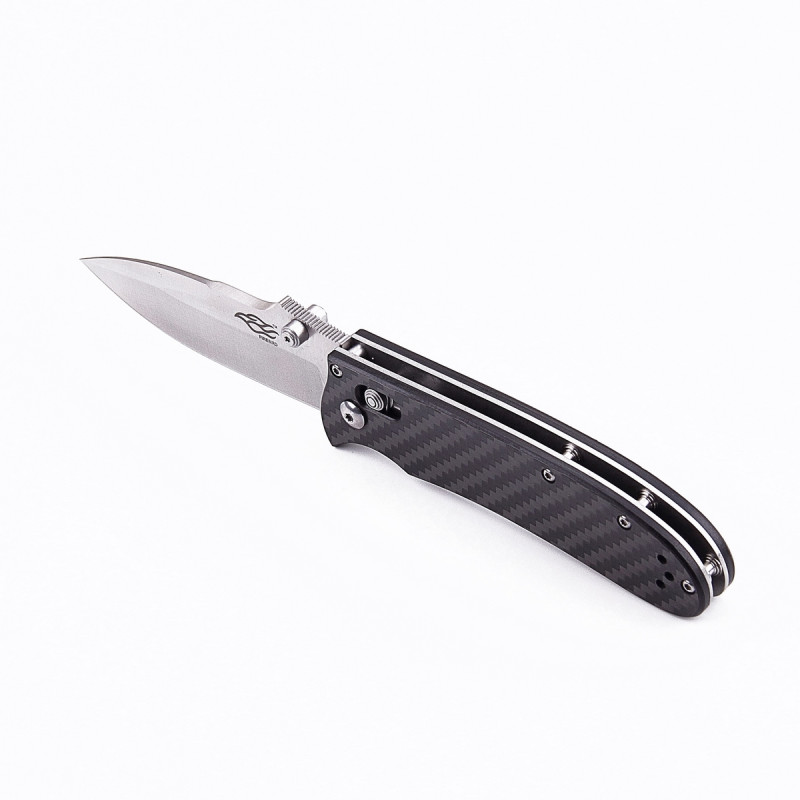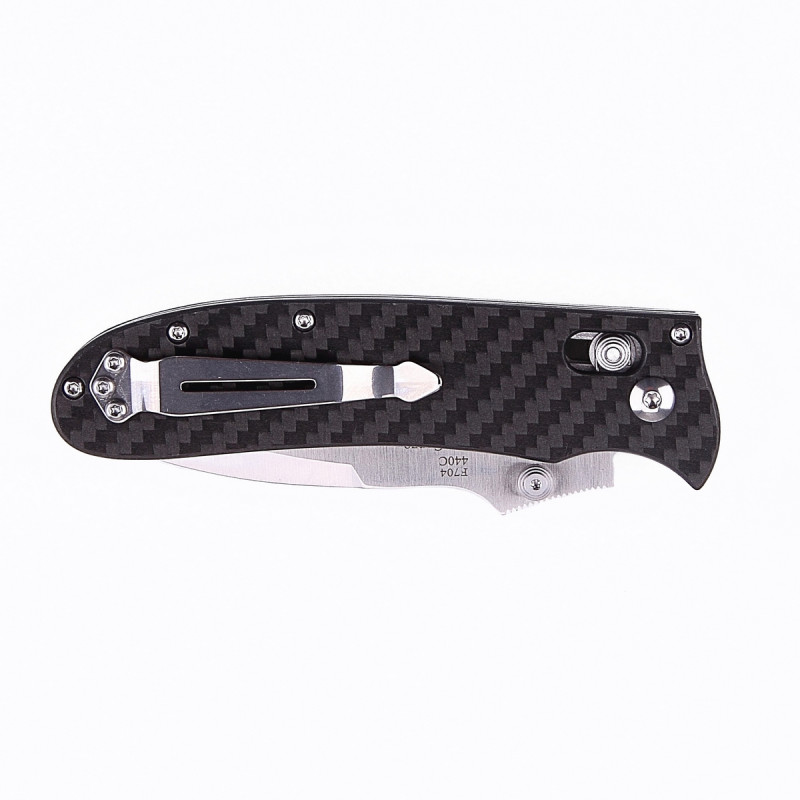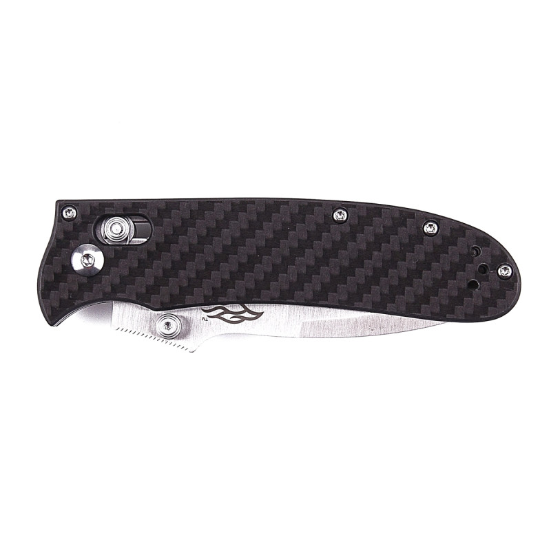 Ніж F7041-CF відразу сподобався всім, як тільки з'явився на ринку. Він універсальний і міцний, виробник продумав кожну дрібницю. Форма клинка класична – drop-point, з приспущеним до вістря обухом. Виготовляється він із високоякісної сталі 440С з твердістю 58 HRC. Фіксує клинок у закритому і відкритому положенні механізм G-Lock, який показує високу надійність.