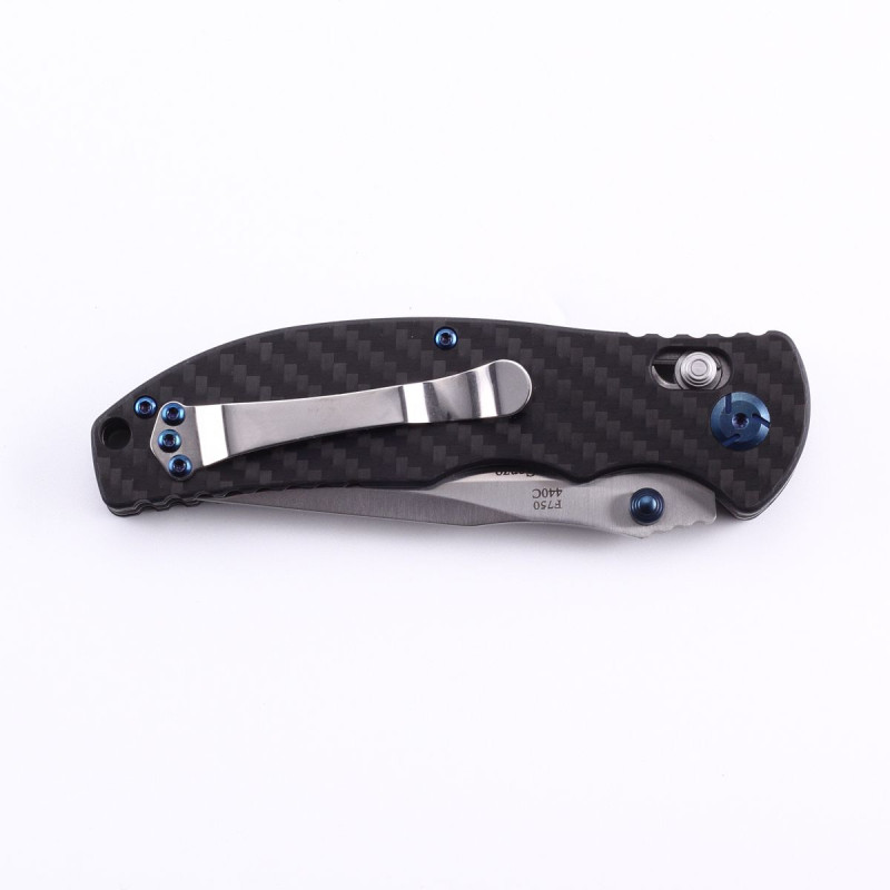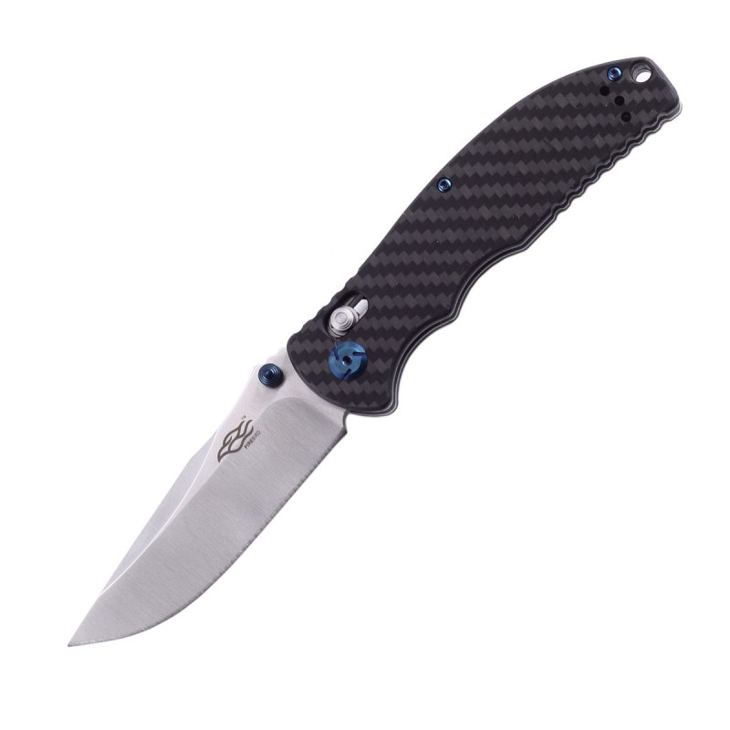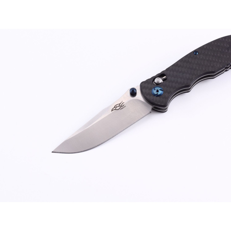 Ніж Firebird F7501-CF є своєрідною «класикою» серед моделей цієї лінійки. Основна його відмінність від схожих моделей полягає в рукоятці, яка виготовлена з карбону. Даний матеріал має непогану пластичність, що дозволяє йому в буквальному сенсі амортизувати удари від падіння ножа. Завдяки способу переплетення карбонових волокон, ніж F7501-CF має запам'ятовується на вигляд зручною рукояткою, яка гарантовано витримає навіть самі екстремальні умови експлуатації. До особливостей рукоятки також можна віднести наявність невеликої знімною кліпси і кріплення під неї з обох сторін рукоятки. Це пристосування, в парі з отвором під темляк, дозволить закріплювати ніж в самому зручному для вас місці, будь-то пояс джинсів або лямка туристичного рюкзака.
