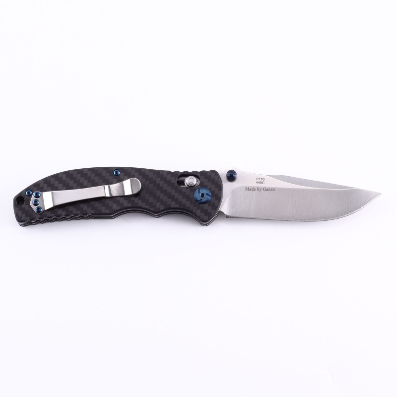 Клинок ножа F7501-CF виготовлений з нержавіючої сталі марки 440С і має форму Clip-point. У якості декоративних елементів на клинку даній моделі присутня не тільки фірмове клеймо Ganzo з логотипом, а і вигравіруваний напис Firebird з невеликим знаком у вигляді полум'я.