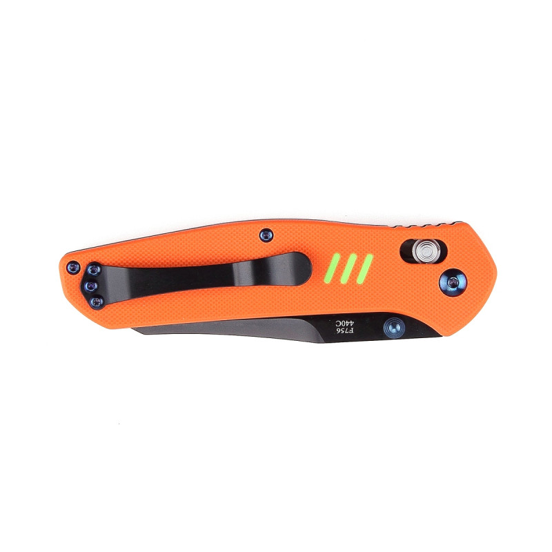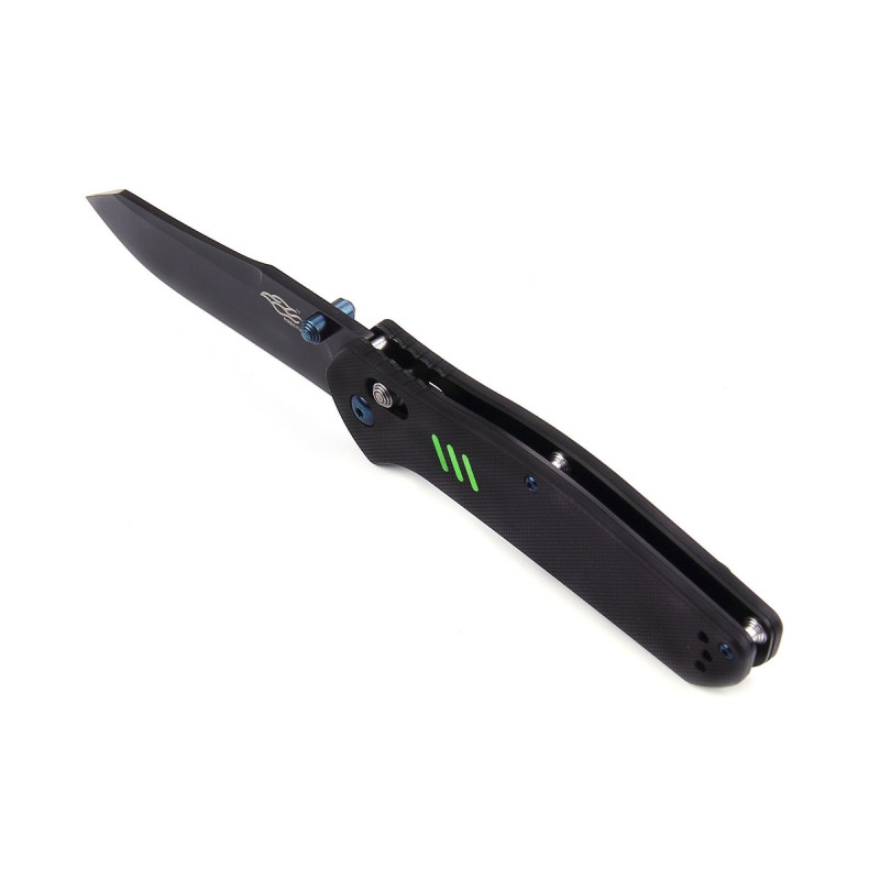 На рукояті розміщені три яскраво-зелені смуги, накопичують світло. Завдяки цьому, навіть вночі на риболовлі чи полюванні ніж буде легко знайти. Ви можете вибрати один з двох представлених кольорів: чорний або зелений. Також на рукояті розміщена знімна кліпса, що дозволяє причепити ніж на кишеню або ремінь. За фіксацію в закритому стані відповідає замок G-Lock, який максимально надійний і безпечний.