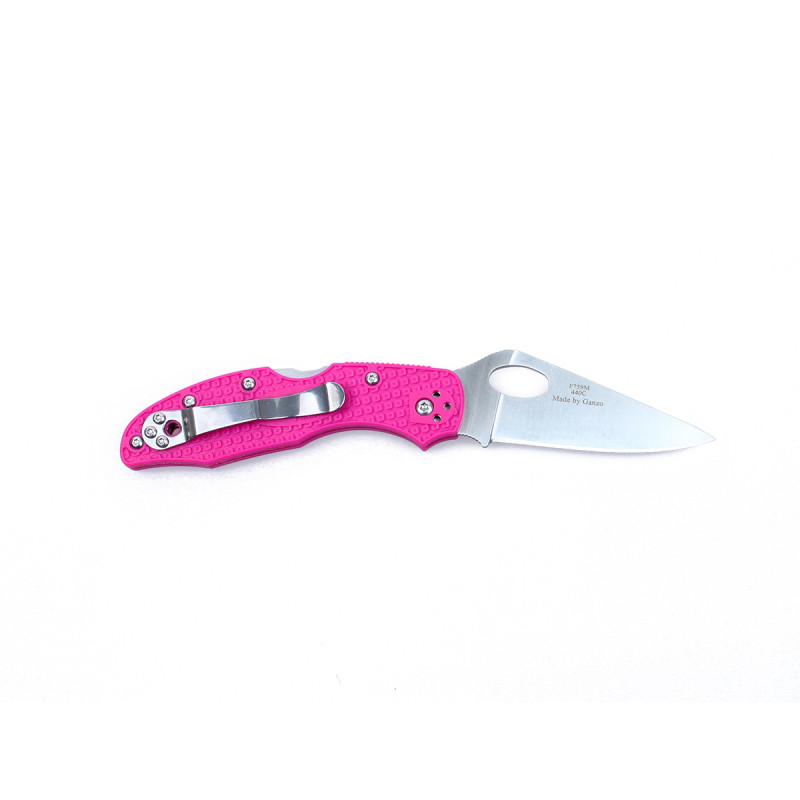 Що стосується рукоятки, то вона може бути оранжевою, чорної, рожевий або блакитний. Матеріалом для яскравих накладок послужив наповнений скловолокном нейлон. Це дуже міцний і стійкий до різного роду впливів матеріал, який прослужить багато років. Щоб ніж не прослизав у долоні, накладки зроблені текстурними. Щоб закріпити ніж у кишені і виключити його випадіння під час перенесення, рекомендується використовувати притискну кліпсу. Її можна встановити в тому положенні, яке здасться найбільш зручним (все можливе 4 варіанти).