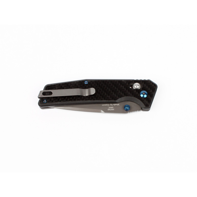 Рукоятка ножа Firebird FB7603 може виготовлятися з двох різних матеріалів композитного типу і покупець може вибрати будь-який з них. Це карбон, який пофарбований в чорний колір, або ж склопластик G10 чорного, оранжевого, камуфляжного або зеленого кольору. На ручці ножа закріплюється кліпса, щоб його можна було зафіксувати на поясі.