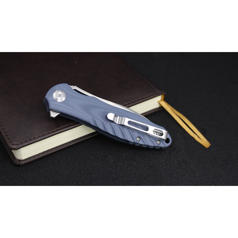 Ручка примірника зроблена з традиційного G10, що додає їй зносостійкість, стійкість до впливу температур і захищеність від механічних ушкоджень. Також цей матеріал, який являє собою склотекстоліт, легко піддається фарбуванню. Він шорсткий на дотик. Виріб комфортно тримати в руці, воно не зміщується, не ковзає. Ніж відносять до категорії флипперов.