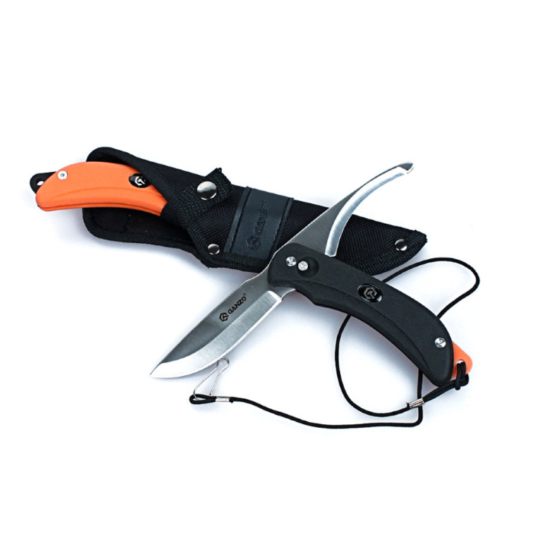 Основна оригінальність ножа Ganzo G802 полягає в тому, що замість одного клинка у нього їх два. Обидва леза — однакового розміру, по 90 мм. По товщині вони — 3 мм Ріжуча кромка в кожному з випадків гладка, хоча геометрія самих клинків істотно відрізняється. Одне з лез за формою наближена до класичної фінці, а друге сильно вогнуто, з тупим кінчиком. Вони підійдуть для приготування в поході бутербродів або іншої їжі, а також для чищення риби, виконання різних підсобних робіт. Для виробництва цих клинків використовується нержавіюча сталь, твердість якої оцінюється на рівні 57 HRC. Цей метал гідно себе показав в польових умовах і поєднує захищеність від іржі з достатньою для туристичних ножів твердістю.