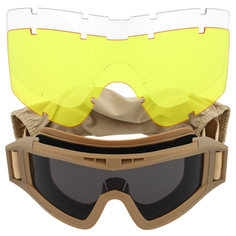 Очки защитные маска со сменными линзами и чехлом тактические мото SPOSUNE JY-003-3 (линзы-PC, оправа-PC, 2 сменные линзы, цвет линз серый)