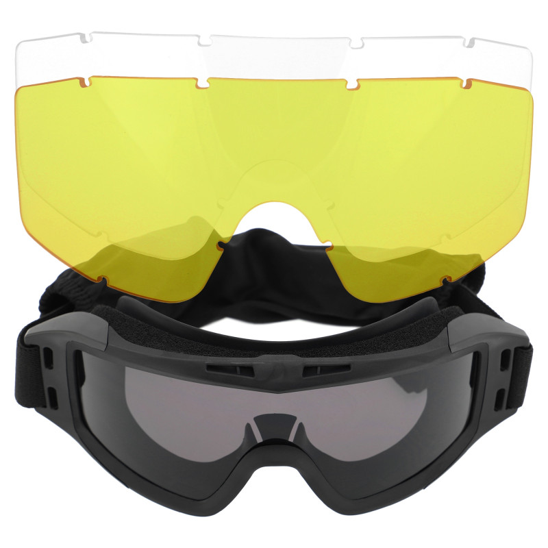 Очки защитные маска со сменными линзами и чехлом тактические мото SPOSUNE JY-023-1 (линзы-PC, оправа-TPU, оправа-черная, цвет линз серый)