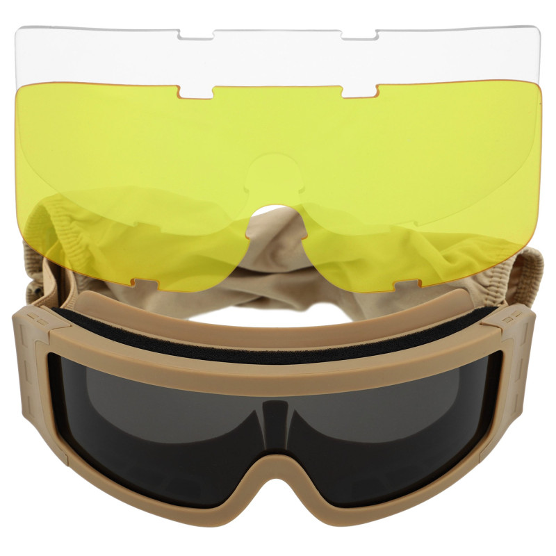 Очки защитные маска со сменными линзами и чехлом тактические мото SPOSUNE JY-027-4 (линзы-PC, оправа-TPU, оправа-хаки, цвет линз серый)