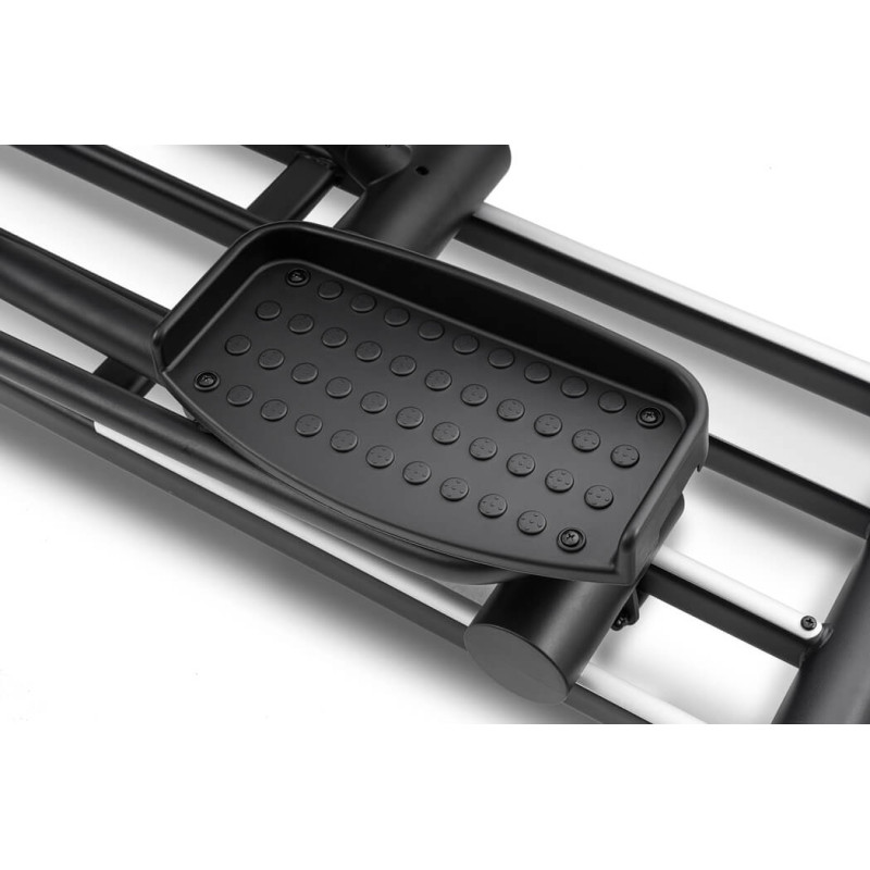 Электромагнитный орбитрек HS-100C Galaxy с амортизирующим матом в комплекте - современный эллиптический тренажер для интенсивных домашних тренировок. Он позволяет прорабатывать практически все группы мышц и усиленно сжигать лишние калории. Благодаря наличию системы магнитной нагрузки, двойных роликов и полозьев, по которым движутся педали для стоп, эта модель гарантирует пользователю высокий уровень комфорта во время тренировки. Педали расположены на расстоянии 12см друг от друга, поэтому во время занятия положения тела спортсмена будет удобным и естественным. Современный компьютер с Bluetooth 4.0 позволяет выполнять разнообразные интерактивные упражнения во время тренировки. Максимальный вес пользователя, который способен выдержать орбитрек, составляет 150кг.