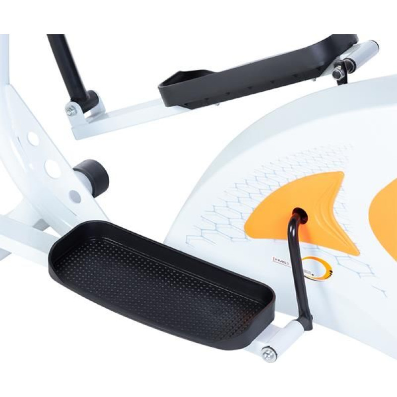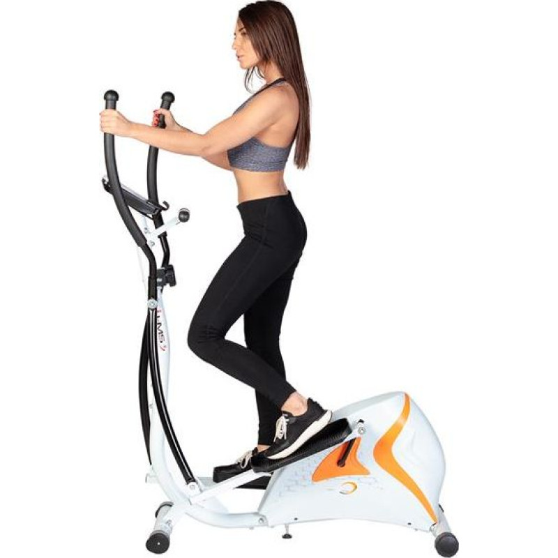 Еліптичний тренажер H2205 дозволяє користувачеві проводити комфортні тренування навіть у невеликій квартирі. Це ідеальне рішення для тих, хто шукає компактне обладнання, яке вимагає лише невеликого простору. Цікавий, інноваційний дизайн сподобається кожному любителю домашніх тренувань. H2005 від HMS дозволяє ефективно покращувати фізичну форму, спалювати непотрібну жирову тканину та зміцнювати м’язи. Опір регулюється ручкою. Тренування дуже тихе, тому не заважає іншим людям, які знаходяться поблизу. На комп'ютерному дисплеї відображаються найважливіші дані щодо сеансу тренування, включаючи імпульс, який можна виміряти за допомогою сенсорних датчиків, вбудованих у ручки. Сталеві полози, обладнані зручними протиковзкими ніжками, є ще однією перевагою цієї конструкції.