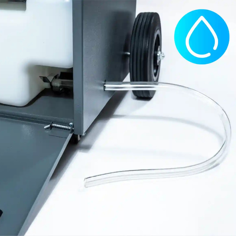 - Мобільність: Оснащений міцними транспортними колесами, що дозволяє легко переміщати осушувач