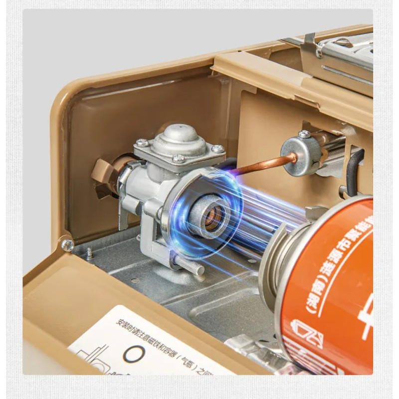- Газовий балон фіксується за допомогою магніту, вбудованого у корпус плити. Це забезпечує надійне кріплення та безпеку експлуатації.