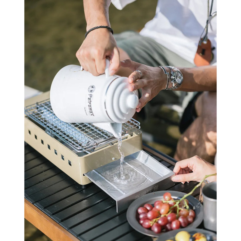 В комплекті є сковорода, решітка-гриль, а також екран контролю та напрямку полум'я — все для вашої зручності. Вага плити складає 1,45 кг, що полегшує її транспортування. Для цього у наборі передбачено кейс для зберігання, який також захищає корпус від подряпин.