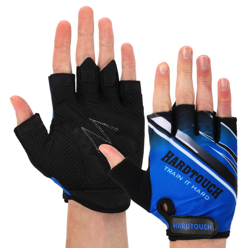 Перчатки для фитнеса и тренировок HARD TOUCH FG-007 (PVC, PL, открытые пальцы, р-р XS-L, черный-синий)