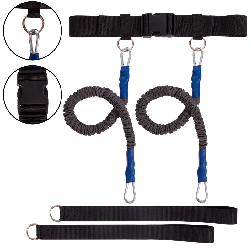 Поводок-амортизатор для скоростных тренировок SP-Planeta JUMPING EXERCISER FI-3024-L (латекс d-5x12мм, полиэстер, длина жгутов-52см, пояс 90x6см)