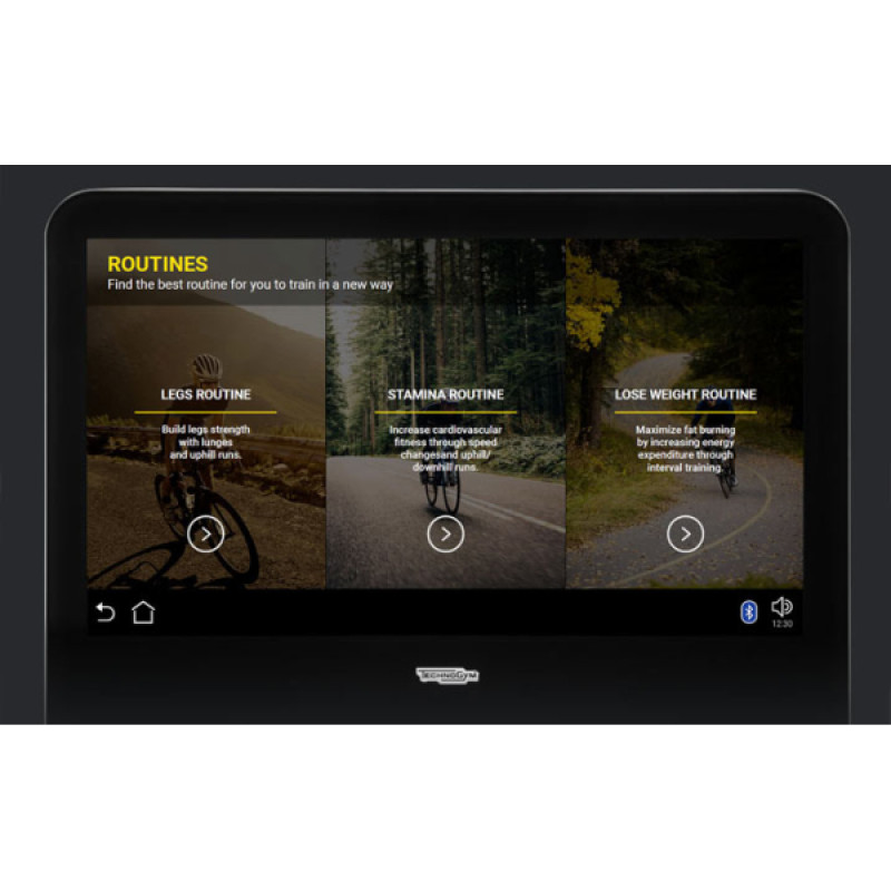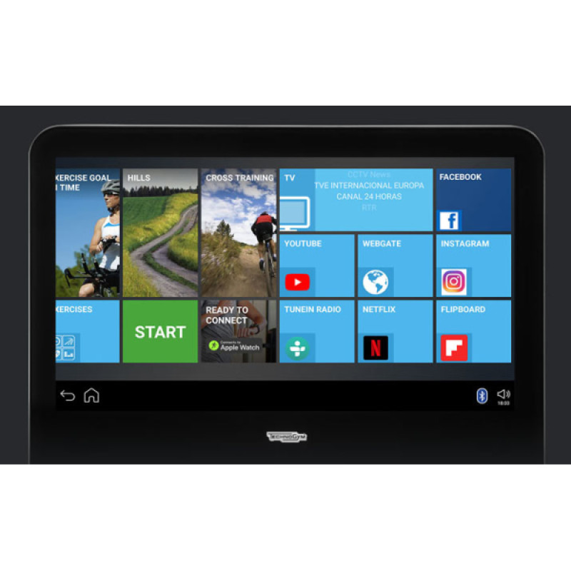 Тренажер оснащён самой современной консолью Unity™ с сенсорным Full HD экраном 15″. Консоль с очень быстрым процессором работает на базе Android 9.Х, оснащена видеокамерой. В систему можно войти с любого устройства Android и iOS через Bluetooth или Wi- Fi.