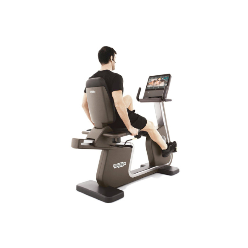 Горизонтальный велотренажёр для тренировок в максимально комфортных условиях. Стильный лаконичный дизайн Technogym, проработанная конструкция с удобным сиденьем, широким проёмом и низкой посадкой, консоль Unity™ с HD экраном 15″, беспроводной зарядкой, видеотренером и виртуальными тренировками.