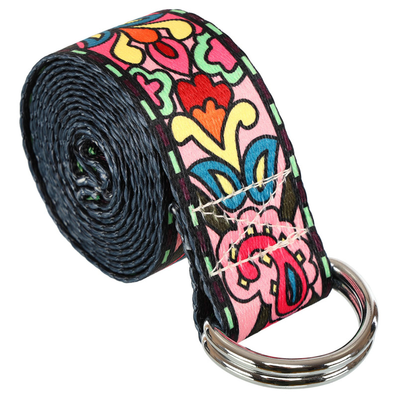 Ремень для йоги с кольцами SP-Sport FI-6975-13 (полиэстер, размер 183 x 3,8см, 1уп-1шт, цена за 1шт, розовый-желтый)