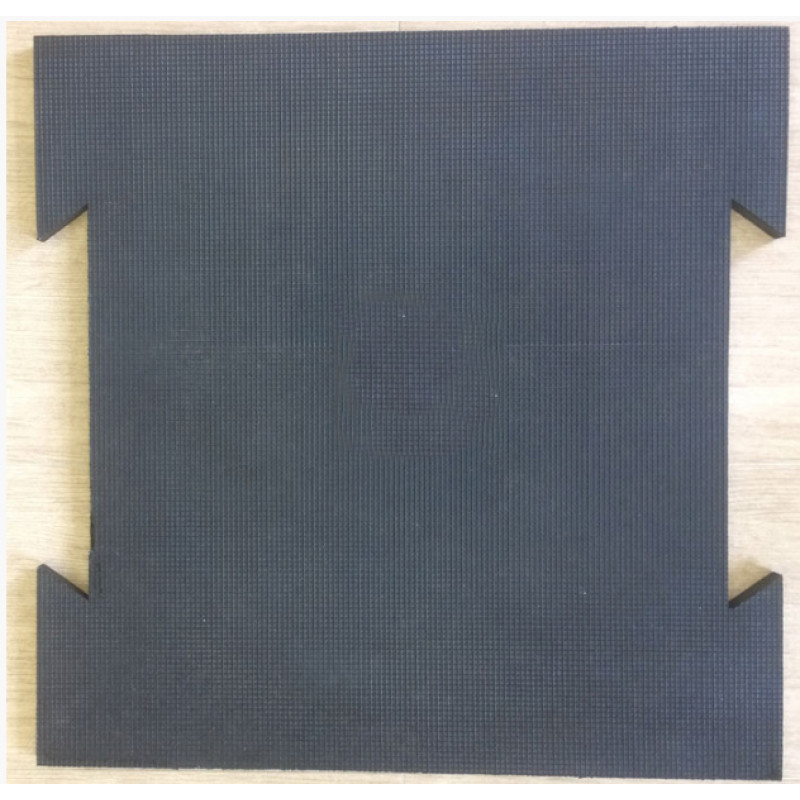 Наша компания специализируется на изготовлении различных спортивных напольных покрытий, а одной из наших передовых разработок является улучшенная резиновая плитка с креплением "ласточкин хвост". Эта плитка изготовлена из вулканизированной резины размером 700 мм х 700 мм и толщиной 20 мм, ее окрас - черный с рисунком "вафелька". Каждая плитка имеет специальные вырезы на обеих противоположных сторонах, позволяющие их соединять с помощью замка "ласточкин хвост". Этот механизм позволяет плиткам смещаться на 50% от центра и создавать прочную единую конструкцию.