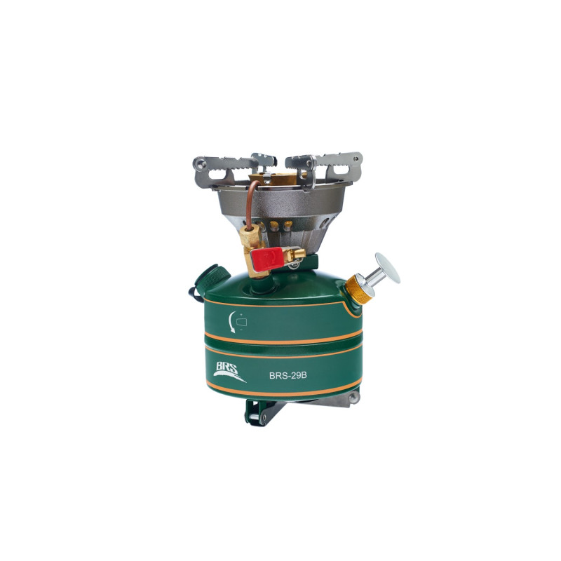 Рідкопаливний пальник BRS-29B без попереднього нагрівання. Паливом є No.92 неетильований бензин та вище (не входить до комплекту). У комплекті зручний пластиковий кейс. Завдяки оновленій конструкції - зменшено кількість забруднень після згоряння палива. Важить 604 грами. У складі виробу такі матеріали, як сплав алюмінію та магнію, нержавіюча сталь та мідь. Витрата палива становить 185 грамів на годину, а потужність пальника досягає близько 2120 Вт. Максимальний об'єм: 450 мілілітрів.
