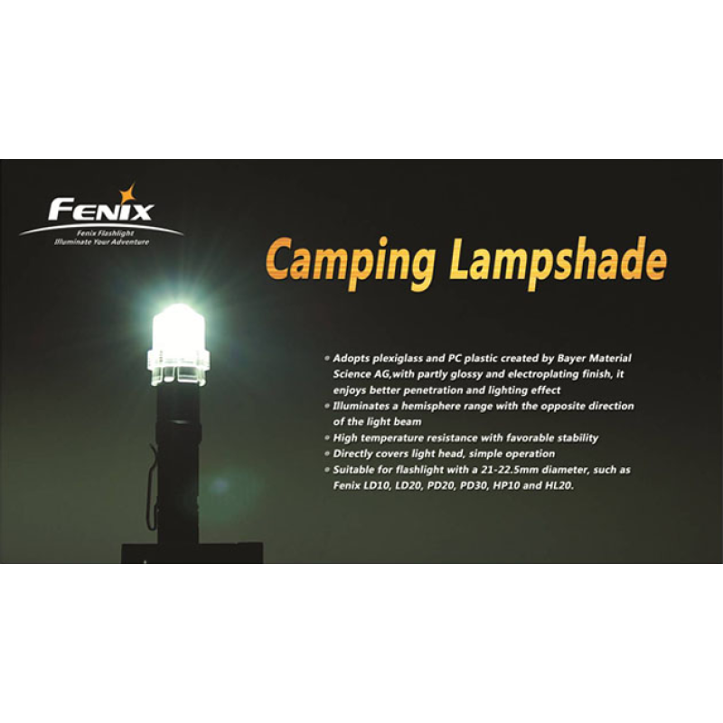 Кемпінговий розсіювач призначений для використання з такими моделями ліхтарів Fenix: LD10, LD20, PD10, PD20, PD30, HP10, HL20. Чудовий аксесуар для любителів полювання і риболовлі, а також людей, що віддають перевагу відпочивати на природі!