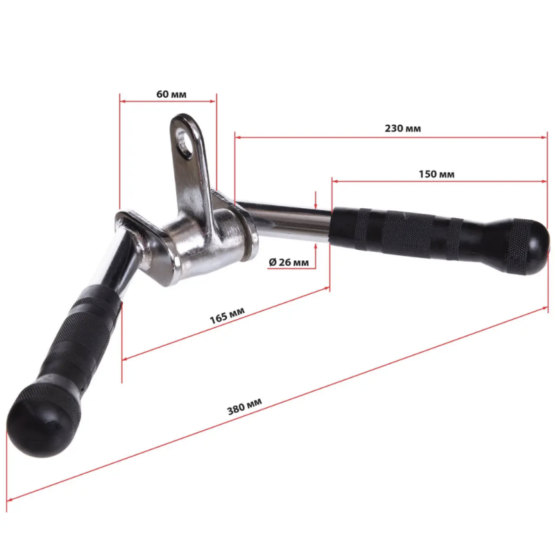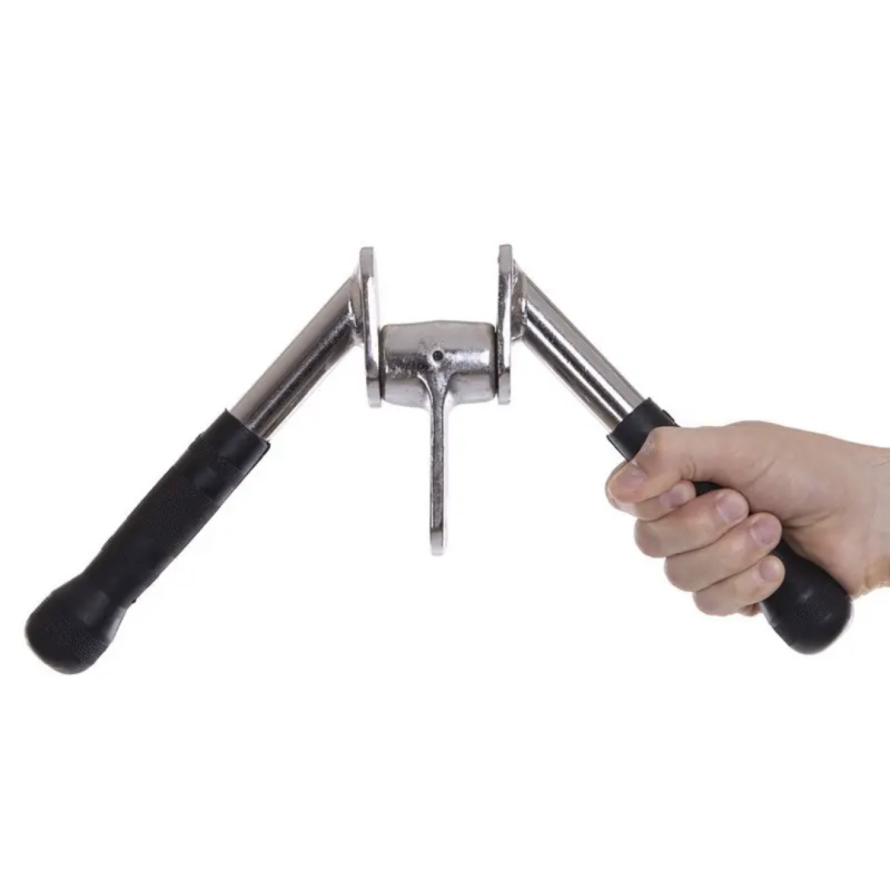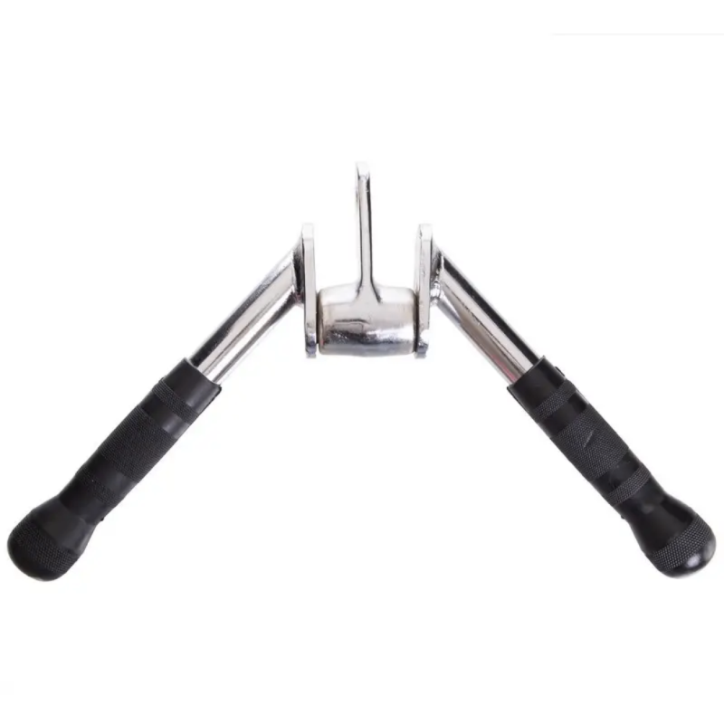 Ручка для верхней тяги York Fitness V-образная на трицепс с вращающимся подвесом и резиновыми рукоятками, хром