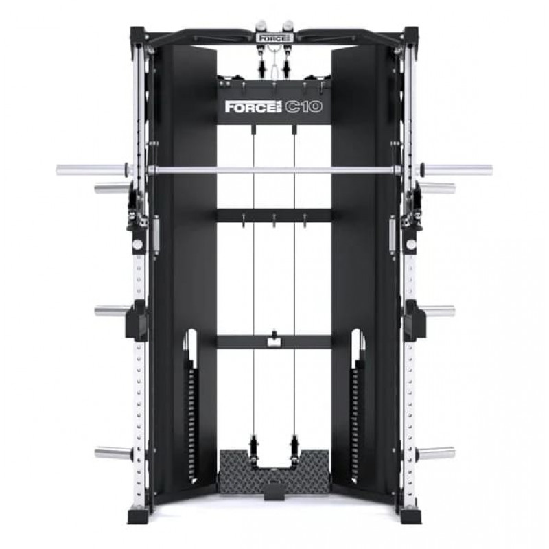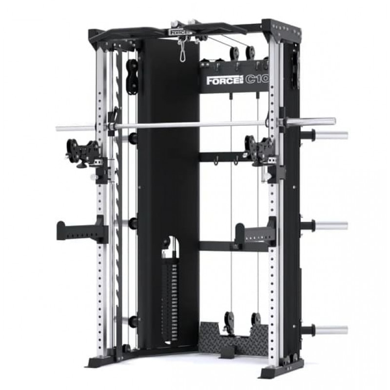 Force USA C10 сочетает машину Смита и силовую раму в уникальной, запатентованной конструкции, что открывает огромные возможности для тренировок в рамках одного компактного тренажера.