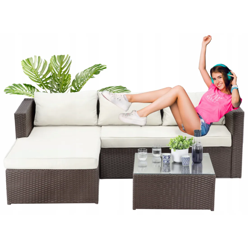 Солнце мягко облучает ваш сад, легкий бриз шелестит листьями, а вы спокойно отдыхаете на своей роскошной садовой мебели от Chomik. Из GARDEN LINE ATRANI вы сможете превратить свой сад или террасу в элегантный уголок комфорта и стиля, где каждая деталь имеет значение. Комплект садовой мебели из ротанга Chomik имеет все, что нужно для создания идеального уголка отдыха: просторный диван и уютный мягкий пуф и функциональный стол (трансформируется - функция стола и пуфа) со столешницей из закаленного стекла. Размеры которых подходят для любого наружного пространства. Неповторимый дизайн, изысканность материалов и непревзойденный комфорт - все это делает садовую мебель Garden Line незаменимым элементом вашего отдыха.