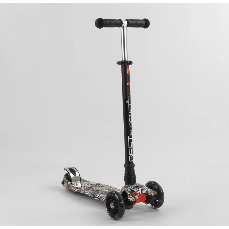 Трехколесный самокат со светящимися колесами от “Best Scooter” предназначен для маленьких любителей активного отдыха. Яркий дизайн данной модели с первого взгляда привлечет внимание малыша и станет любимым транспортным средством!За счет трехколесной конструкции и сдвоенному заднему колесу самокат достаточно устойчив и предотвращает падения во время катания.Пластмассовая дека самоката выполнена из прочного материала и крепится на раму.Т-образный руль имеет прочное металлическое основание. Высота руля фиксируется в 3х положениях. Фигурные грипсы выполнены из резины с рельефными узорами, которые предотвращают соскальзывание ладони с руля во время катания.Наклонная система поворота руля обеспечивает максимально легкое и безопасное управления самокатом. Особенности модели: - яркий и стильный дизайн;- светящиеся колеса;- регулировка высоты руля;- наклонная система поворота руля;- резиновые грипсы;- ножной тормоз на заднем колесе; Характеристики: - полиуретановые колеса;- ширина руля – 26 см;- высота руля регулируется от 77 см до 86 см, с фиксацией в 3х положениях;- размер деки – 55 х 13 см;- размеры колес:передние колеса: диаметр -12см, ширина – 2.4 см;задние колеса: диаметр - 8 см, диаметр – 2.4 см; Материалы: Руль – алюминий;Дека – пластик;Колеса - полиуретан (PU).