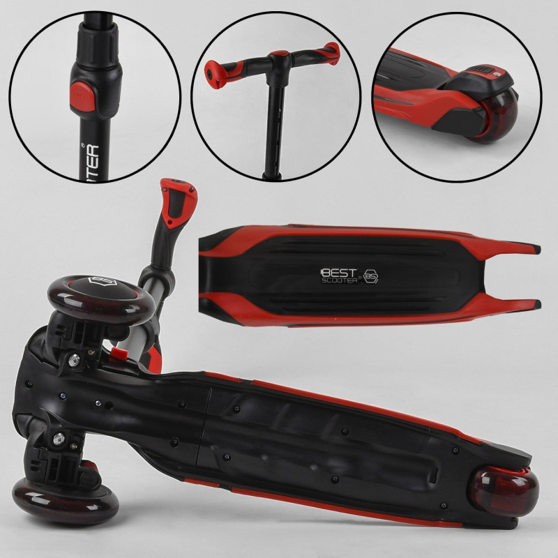 Cамокат Best Scooter с улучшенными функциями, алюминиевым рулем, и со светящимися PU колесами!