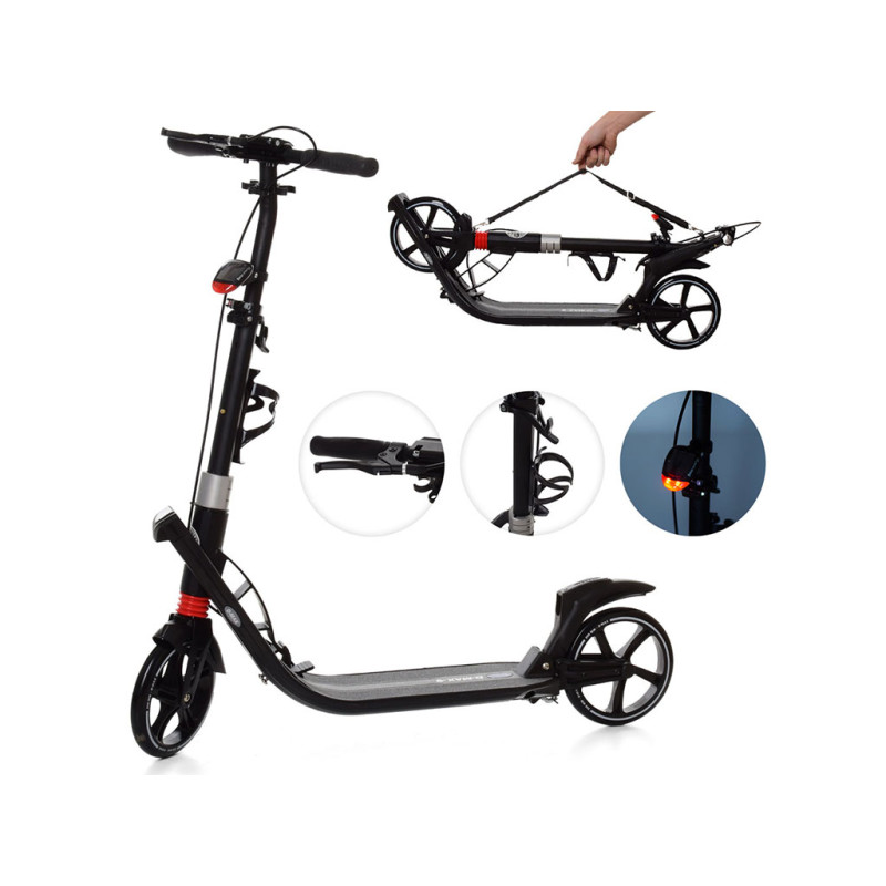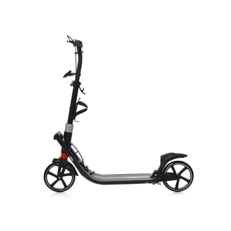 - Обід колеса пластикові. Ручне і допоміжне ножне гальмо робить поїздку на самокаті надійніше.