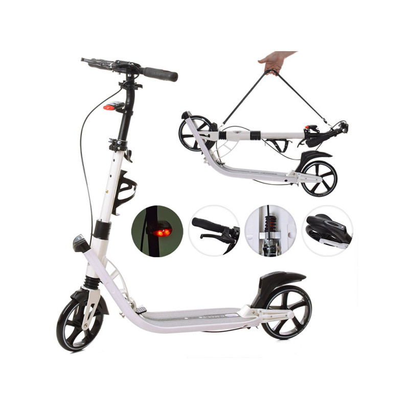 • Обід колеса пластикові. Ручне і допоміжне ножне гальмо робить поїздку на самокаті надійніше.