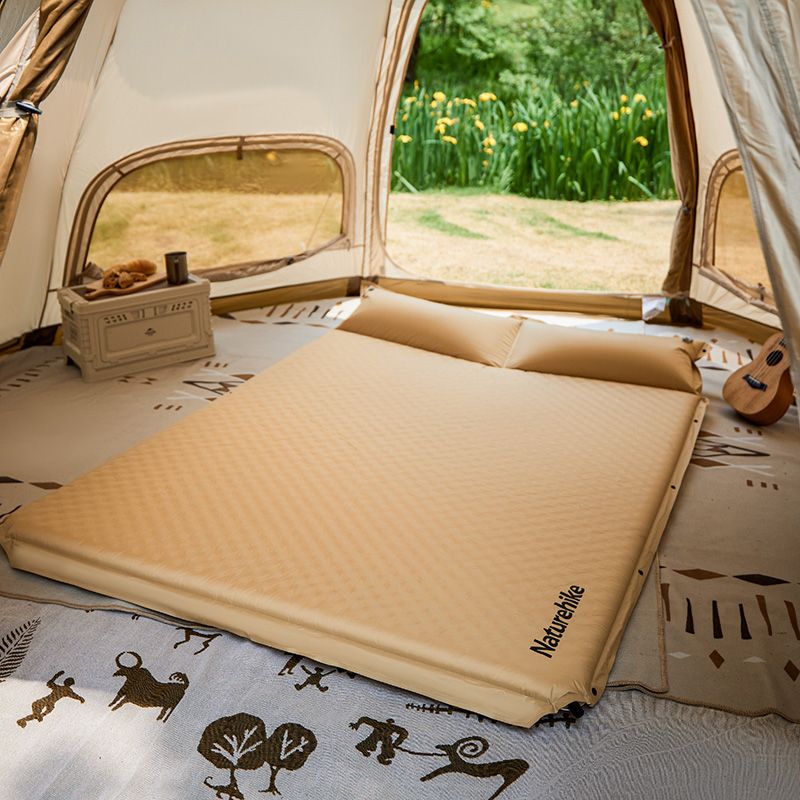 Самонадувний килимок двомісний з подушкою Naturehike CNK2300DZ014, 60 мм, бежевий