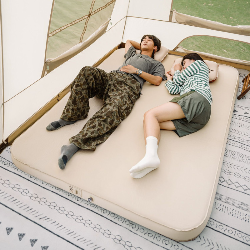 Матрац самонадувний 11 см подвійний із вбудованою помпою Naturehike CNH23DZ10002, бежевий