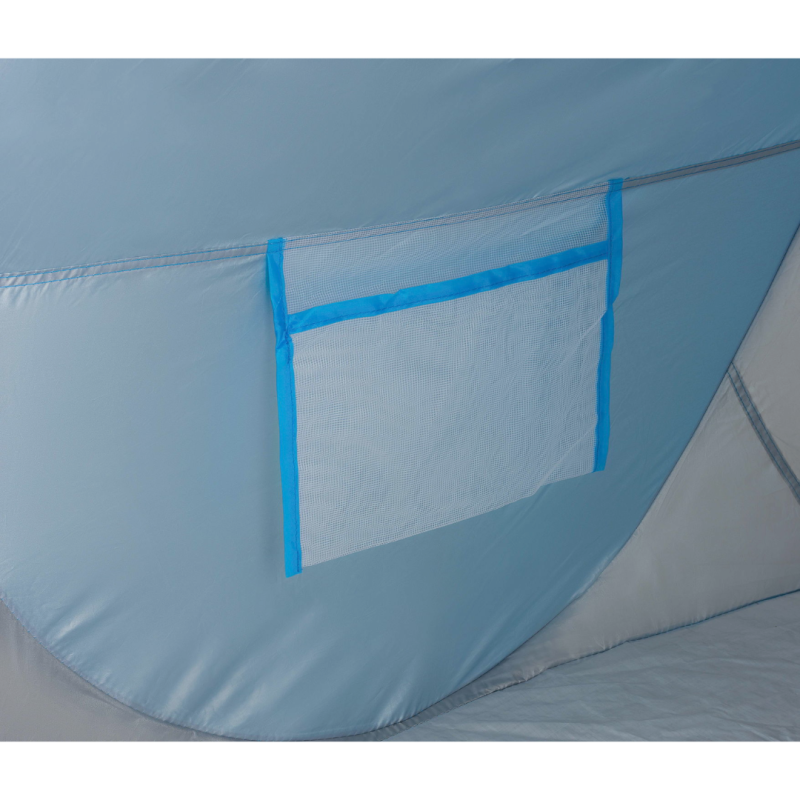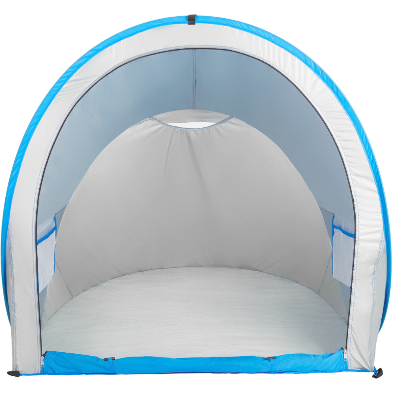 В конструкции палатки есть дополнительные карманы, которые можно заполнить песком, что обеспечит его повышенную стойкость. Также есть внутренний карман, который предназначен для хранения необходимых вещей на пляже. Для большего уюта и комфорта возьмите с собой плед или специальный коврик для пикника, чтобы постелить внутри тента. Палатка легко складывается и раскладывается благодаря технологии автоматического раскладывания Pop Up, в сложенном виде занимает мало места и очень легка.