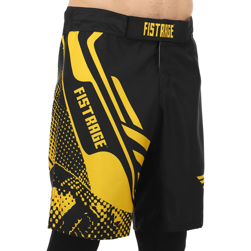 Шорты для смешанных единоборств ММА FISTRAGE размер S-L черный-желтый VL-4178 L