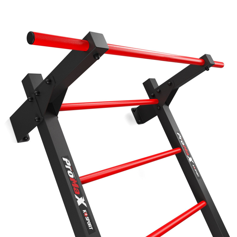 Діаметр перекладин 26,9 мм для зручного та надійного хвату. Чорно-червоне покриття ідеально підходить для будь-якого інтер'єру, як для домашнього, так і для професійного спортзалу.