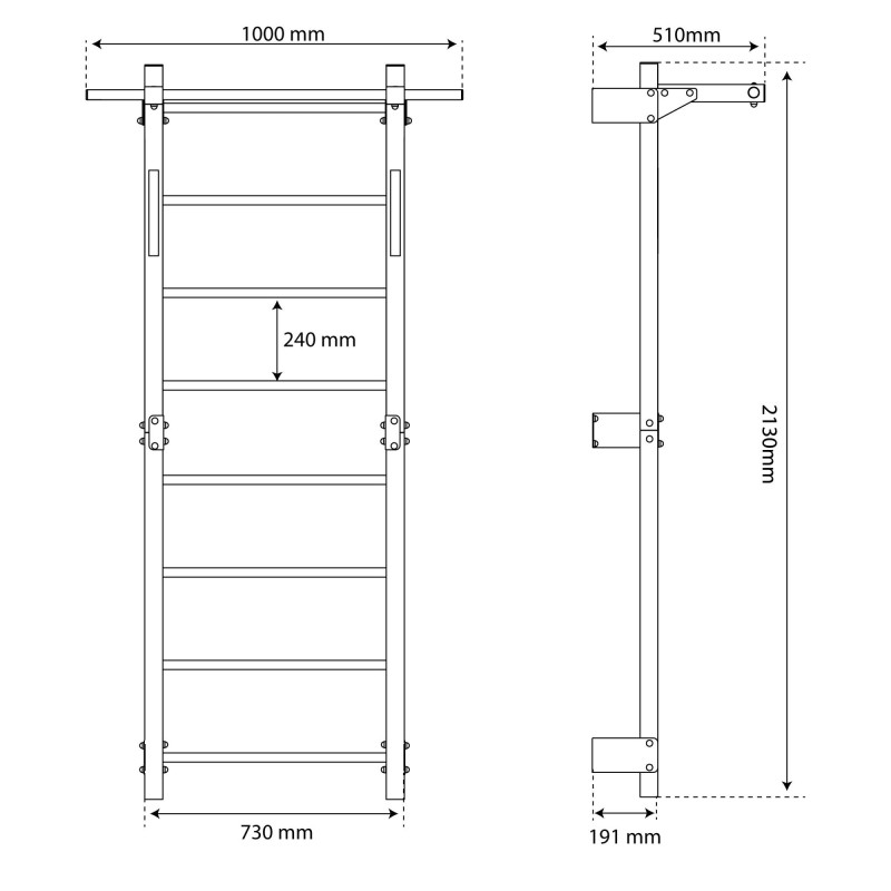 З метою безпеки під час виконання вправ драбину потрібно прикріпити до стіни за допомогою 12 гвинтів, що входять до комплекту. Драбина кріпиться до шести кронштейнів, тому ви можете бути впевнені, що обладнання витримає і динамічні вправи.